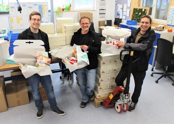 Für die liebevolle Verpackung der Geschenkbox sind die Mitarbeiter der Ansbacher Lebenshilfe verantwortlich. Bereits bei vorangegangenen Kooperationen haben die Möbelhäuser mit dem roten Stuhl gute Erfahrungen mit der Lebenshilfe gesammelt. Deshalb unterstützt das Unternehmen die Arbeit der Lebenshilfe auch durch das Projekt Babybox.