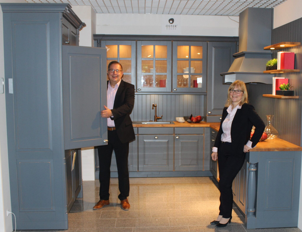 Direkt vor Ort können die Kunden rund 100 verschiedene Küchen mit Händen und Augen erleben. Gerne zeigt Annett Schulze die verschiedenen Stile, Oberflächenbeschaffenheiten und Schrankauszüge direkt am Objekt. Von romantisch-verspielt und kühl-modern bis schlicht oder opulent reicht da die Bandbreite. Auch die neusten Trends spiegeln sich in der großzügigen Küchenabteilung wider. „Küchen im Landhaus-Stil sind absolut in Mode, am besten in Kombination mit einer Insel-Lösung“, weiß die Expertin. Pflegeleichte Oberflächen-Strukturen und grifflose Türen, die sich wie durch Zauberhand öffnen, sind ebenfalls sehr beliebt. „Die berühmten Le Mans-Eckschränke sind ebenso wie der klassische Apothekerschrank rückläufig. Kunden setzen vermehrt auf Vorratsschränke mit Innenauszügen“, fügt Scholze hinzu.