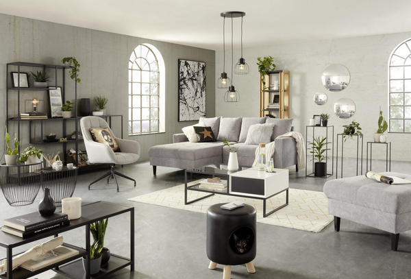 eine große Auswahl an Möbeln und Accessoires. Kund*innen finden hier von der multifunktionalen Schlafcouch über den ausziehbaren Esstisch bis hin zur Stehleuchte im Industriestil alles für eine top moderne Loft-Wohnung!