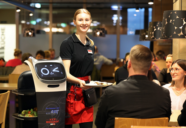 „Lutzi“ wird vor seinem allerersten Einsatz einmalig durch die Gastronomie geführt und erfasst dabei voll automatisiert die Laufwege, weiß am Ende also, welcher Tisch wo steht und wird dann in der Küche oder an der Bar mit Speisen und Getränken bestückt und mittels der Tischnummer zu den Gästen geschickt. „Lutzi“, dessen Akku bis zu 24 Stunden hält, kann alleine unterwegs sein, wird aber oft vom Personal begleitet, so dass das Servieren mehrerer Mahlzeiten oder aber das Abräumen großer Tische jetzt auf einmal möglich ist. „Genau darum geht es uns auch. Die Bedienung musste oft zweimal gehen, so erspart sie sich jetzt einen Weg, wenn ,Lutzi‘ ihr beim Tragen hilft“, sagt Andreas Haderer, der in diesem Jahr weitere Serviceroboter-Arbeitsplätze in den Restaurants der XXXLutz Möbelhäuser schaffen möchte.