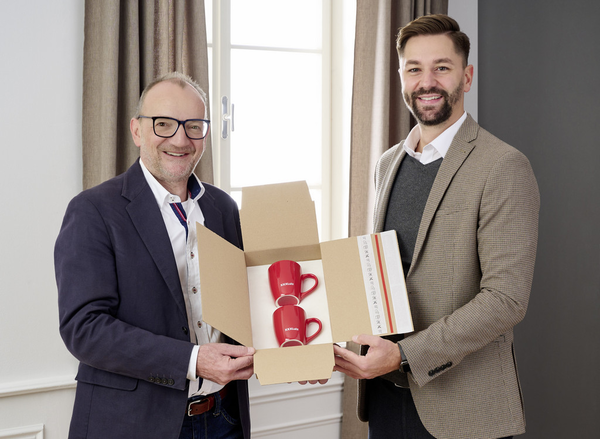 : Günter Franc (l.), Leitung Verpackungstechnik in der XXXLutz Gruppe, und Sascha Matzner, Head of ESG in der XXXLutz Gruppe, freuen sich auf den Testbeginn mit Stora Enso.