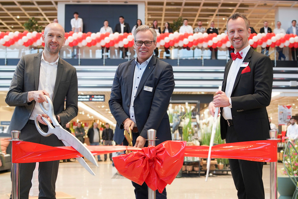 „Die Geschäftsführung von XXXLutz spricht sich definitiv für diesen Standort aus, glaubt an den Standort Halstenbek und das ist für uns auch wichtig, denn wir glauben auch an den Standort", sagte Halstenbeks Bürgermeister Jan Krohn, der gemeinsam mit Sascha Weil, Mitglied der Geschäftsführung und Gebietsverkaufsleiter bei XXXLutz sowie Hausleiter Sven Lange den offiziellen Startschuss für das neue Einkaufserlebnis im Möbelhaus mit dem Roten Stuhl gab und das symbolische rote Band durchtrennte.