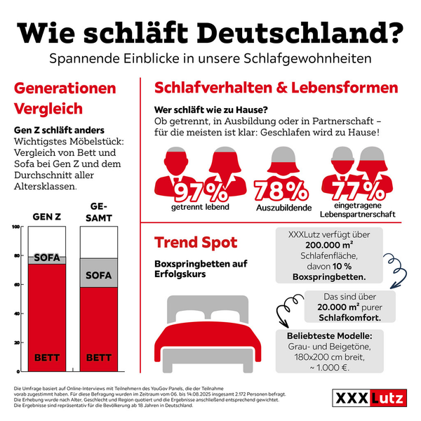 Wenn am letzten Oktoberwochenende die Uhren umgestellt werden, geraten nicht nur Tagesrhythmen durcheinander – auch die Bedeutung des Schlafens rückt wieder ins Bewusstsein. Und laut einer aktuellen Auswertung von YouGov im Auftrag von XXXLutz zeigt sich: Die junge Generation hat längst erkannt, wie wichtig guter Schlaf ist.